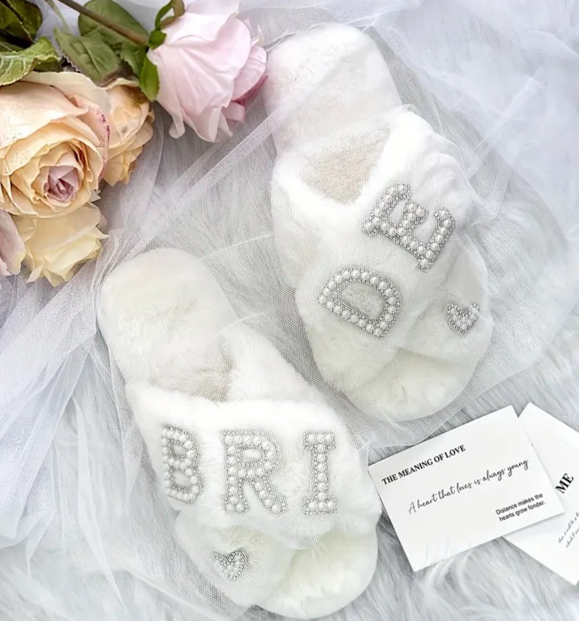 Hermosas pantuflas para la novia, te sentirás muy cómoda y elegante con este par de pantunflas bride ✨Tiene un diseño único ✨ 🥂👰🏻♀️💖